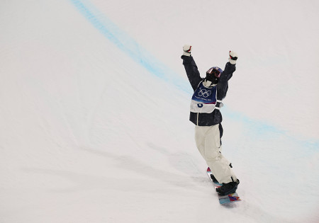 スノーボード女子ハーフパイプ決勝3回目を終えた清水さら。4位だった=12日、リビーニョ 【時事通信社】