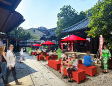 高台寺・圓徳院で金箔かけた抹茶アイスのサンプリング企画