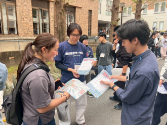京大銭湯サークルが4月2日・3日・6日、京都大学吉田キャンパス(京都市左京区吉田本町)で開かれた新歓イベント「紅萠祭(こうほうさい)」で入部を呼びかけた。