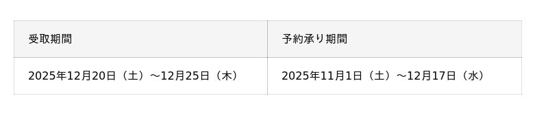 ・店頭:2025年11月1日(土)~12月25日(木)予定