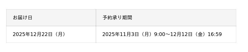 2025年11月28日(金)16:59までにご注文いただくと、送料(※2)が通常よりお得になります。