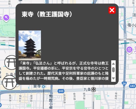 検索窓の下にある「神社仏閣」ボタンでアイコンが出現。