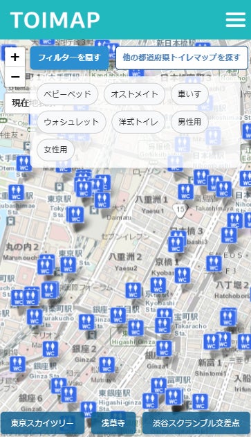 TOIMAPでは、現在20,000か所以上のトイレ情報を発信している。
