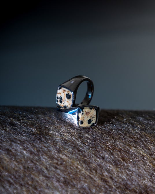 新定番モデルとなりつつあるKay Ringをベースに、現在では廃盤となっている"Leopard"の石を組み合わせたモデル。小ぶりなサイズ感ながらも存在感があり、色味は人肌との相性が良く、そっと溶け込むような上品さが特徴です。
