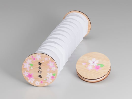 本製品は、表紙に直径130mmの国産ヒノキ材を使用し、中の蛇腹和紙まで丸くカットした独自設計が特徴です。さらに裏面に特殊な撥水(はっすい)加工を施したことで、御朱印に使う墨が裏面にしみ出ない構造を採用しています。