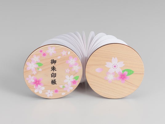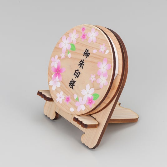 古来より「円満」や「良縁」を象徴する丸い形の御朱印帳で、さくらといっしょに平和な参拝のひとときを穏やかに過ごしてほしいという願いを込めました。発売を記念して専用スタンドをおまけでご用意いたしました。
