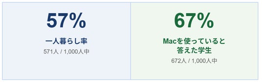 アンケートでは、芸術大学への進学を考える高校生が気になる学生生活の実態が見えてきます。例えば、「一人暮らしをしている」と回答した学生は57%でした。