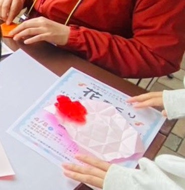 1. 地域連携(向日市):向日市観光交流センター「まちてらすMUKO」で開催される「てらすマルシェ&まーるハローワーク」と連動し、子どもたちが“お仕事体験”の一環として折り紙の花づくりに参加しました。今回は合計人数77名もの子どもたちに体験をいただけました。大学生の方々にもお手伝いいただき、活気ある職業体験の場づくりをいただきました。