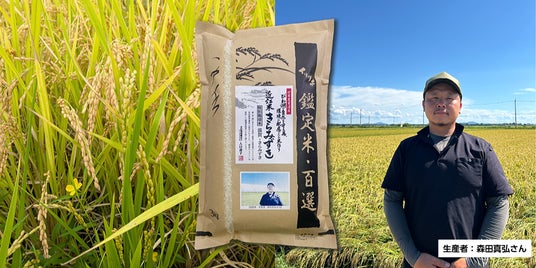 滋賀県高島市の生産者・森田真弘さんが手がけたもので、「第26回 米・食味分析鑑定コンクール:国際大会」の都道府県・海外地域代表部門で金賞を受賞しています。さらに、米・食味鑑定士として知られる株式会社イリグチ 代表取締役・入口壽子氏の鑑定米でもあります。