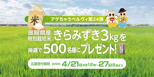 賃貸マンション管理会社の株式会社長栄(本社:京都市、代表取締役 社長執行役員:舩井 渉)は、当社管理の賃貸アパート・マンションにお住まいの方を対象に、滋賀県産の金賞受賞米「きらみずき」3kgを抽選で500名様に提供するキャンペーンを実施いたします。