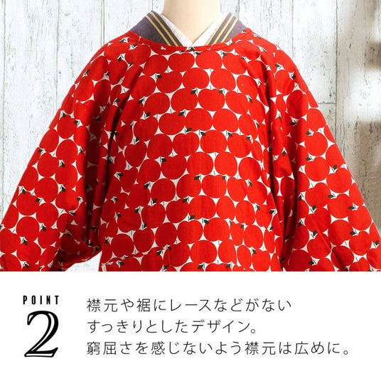 着物を日常的に楽しむ方にも、普段の洋服で家事をする方にも使いやすいよう、着物屋さんが細部までこだわって作りました。