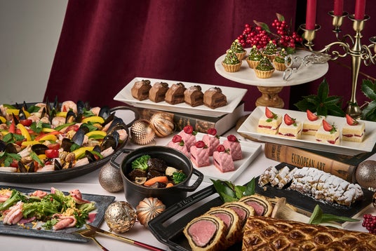6日間限定のクリスマスムード溢れるブッフェを開催。ホリデーシーズンを彩る贅沢メニューが並びます。