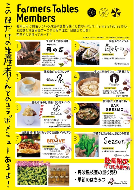 当日は8店舗と特設直売ブースが西田ビルへやってくる!