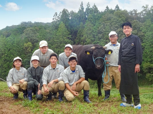 農芸高校 放牧牛肥育チームと四川料理長 山崎
