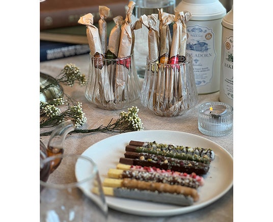 ミルクチョコレート、ビターチョコレート、ホワイトチョコレート、ストロベリーのスティックタイプのチョコレートを詰め合わせました。
