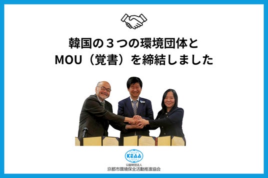 公益財団法人京都市環境保全活動推進協会は、令和元年に韓国の社団法人自然の友研究所と環境教育・学習、ESD等推進に関するMOU(覚書)を締結、令和6年に社団法人釜山環境公団と環境学習コンテンツや環境教育セミナー等における相互協力及び交流等の環境教育推進に関するMOU(覚書)を締結するなど、韓国の環境団体との交流・連携を推進しています。