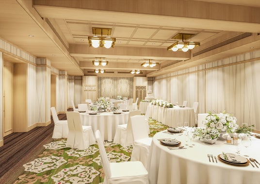 宴会場は、奈良の歴史を感じさせる正倉院文様をモチーフとした絨毯など、伝統とモダンが調和するシックで落ち着いた会場に生まれ変わります。