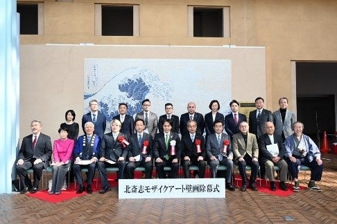 北斎志モザイクアート壁画除幕式の様子