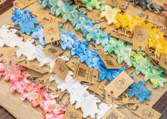 圧縮された海ゴミはキレイなキーホルダーへ生まれ変わる