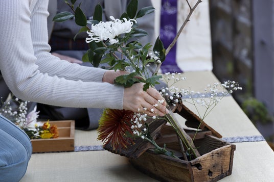 二十四節気の「雨水(うすい)(*)」の時期、地面や木々の枝から一斉に芽吹き出す様子は、古より春の兆しを待ちわびる人々の心を躍らせてきました。星のや京都では、華道体験で芽吹きを表現します。その後は、抹茶と暦を映した和菓子で身も心も温まります。冬の終わりと春の始まりの「間(あわい)」に、生命の本質やありがたみを感じながら興じる、この季節ならではの華道体験です。