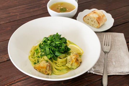 「グリルチキンとほうれん草のクリームパスタ」
