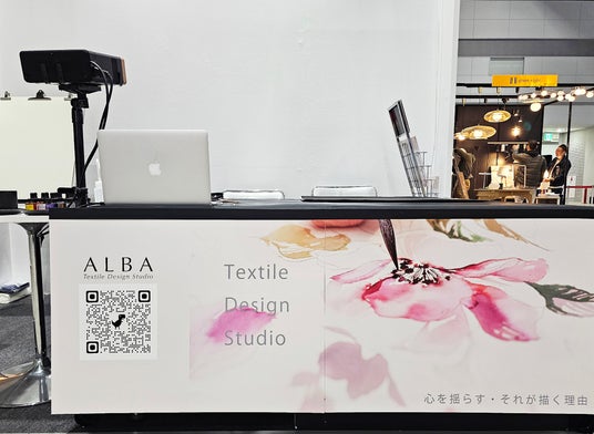 この度、京都を拠点に独自のオリジナルプリントテキスタイルデザインを展開する株式会社ALBAテキスタイルデザイン事務所が初出展。ALBAはこれまで培った精緻で高度なデザイン技術と伝統工芸の精神を融合させ、来場者の目の前で筆を動かしてテキスタイルデザインを生み出すライブペイントパフォーマンスを軸に、新しい形の展示を実施しました。来場者は「描く」行為の瞬間をリアルに体感し、国内外から高い関心を集めました。