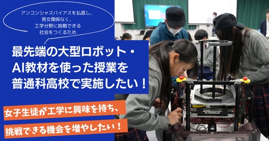 女性の工学系への進学率は全体の2割にも満たず,とても少ない状況です.その背景には,進路選択の前段階で工学に興味を持つきっかけが得られていないことがあるのではないかと感じています.ロボットやAIが私たちの生活の一部になりつつある今,学べる機会が必要と思い,今回クラウドファンディングを企画しました.1台でも多くのロボット・AI教材を高校生の手に届けるために,みなさんの温かいご支援をどうぞよろしくお願いいたします.