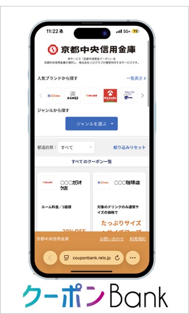 リログループ<東証プライム市場 8876>の一員であり、福利厚生アウトソーシングサービスのトップカンパニーである株式会社リロクラブ(本社:東京都新宿区、代表取締役社長 岡本 盛 https://www.reloclub.jp/cs-solution )はCRM事業の分野で、京都中央信用金庫(本店:京都市下京区、理事長 植村 幸弘 https://www.chushin.co.jp/ )と業務提携し、スマートフォンアプリ「京都中信アプリ」をご利用のお客さま向けに、クーポンサービス“クーポンBank”の提供を12月15日より開始します。