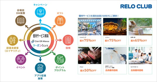 さらに、リロクラブは会員優待サービス「クラブオフ(Club Off Alliance)において、「福利厚生倶楽部」でのノウハウを活かし、企業の優良顧客の獲得・囲い込みを支援するCRMサービスを展開しております。企業のニーズに合わせた付加価値の高い顧客体験を創出し、顧客満足度(CS)の向上に貢献しています。