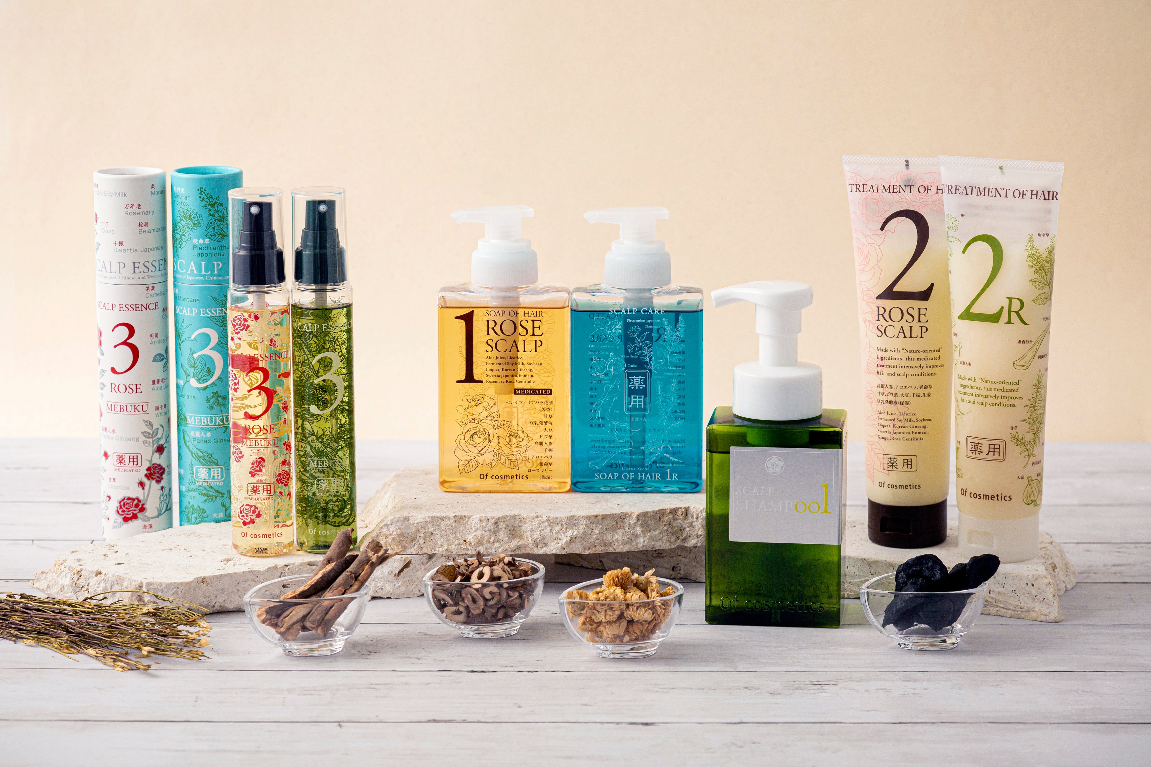 オブ・コスメティックスのスキャルプケアシリーズは、頭皮ケアに特化したシャンプー、トリートメント、スキャルプエッセンスのラインナップ。このシリーズは、フケやかゆみ、細毛や抜け毛などにアプローチする商品として開発されました。アロエベラ液汁や高麗ニンジンなど、20種類以上の和漢洋植物エキスを採用し、地肌と髪のケアに最適です。地肌に潤いと柔軟性を与えるだけでなく、仕上がりの美しさにもこだわっています。