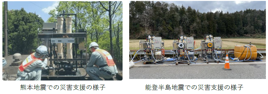2011年の東日本大震災をはじめ、2024年の能登半島地震では小松市・輪島市・珠洲市に非常災害用造水装置を無償貸与するなど、国内での自然災害や地震の被害を受けた地域において、支援活動を行ってきました。