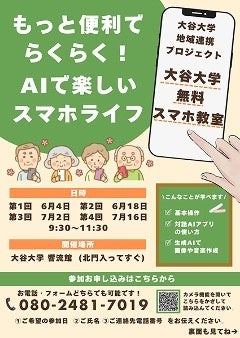 大谷大学(所在:京都市北区小山上総町)は、2026年1月14日(水)大谷大学にて地域住民を対象としたスマートフォン教室(以下 スマホ教室)【担当:酒井 恵光 教授、武田 和哉 教授】を開催いたします。