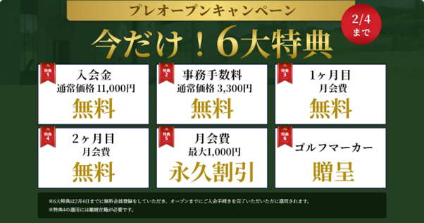 現在、月会費永久割引など6大特典で入会できるお得なキャンペーンを実施中。特典適用での入会をご希望の方は、まずは無料会員登録(2/4まで)をお済ませの上、詳細案内をお待ちください!
