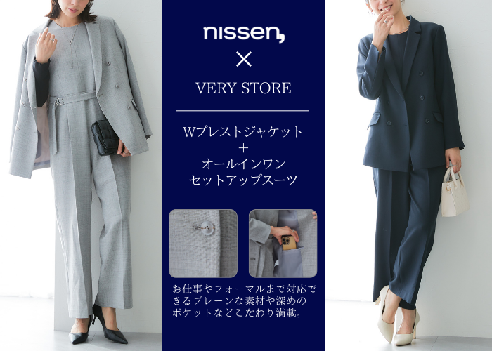 株式会社ニッセン(本社:京都市南区、代表取締役社長:羽渕 淳)は、子育て中の女性に人気のファッション・ライフスタイル誌「VERY(ヴェリィ)」が展開する光文社ECサイト「VERY STORE」(https://veryweb.jp/verystore/)とコラボレーションした新作セットアップスーツを、2026年1月7日(水)に発売しました。なお商品は、同日発行の雑誌「VERY」に誌面掲載されています。