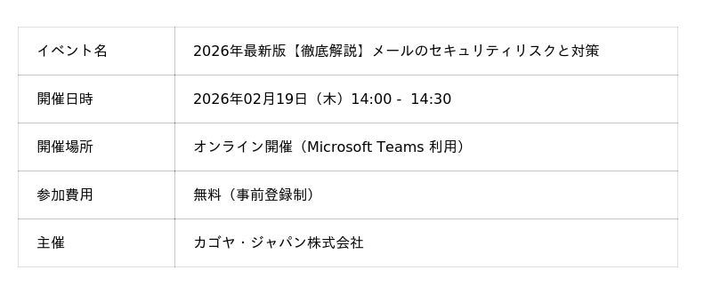 本セミナーでは、こうした悩みを抱えるご担当者に向けて、最新のメールセキュリティ動向と、企業として最低限押さえておくべき対策ポイントを基礎から丁寧に紐解きます。