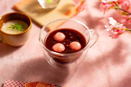 桃色白玉の優しい春ぜんざいは、北海道あずきを使用した甘さ控えめのぜんざいに桃色の白玉を添え、見た目にも軽やかな春の余韻を表現。