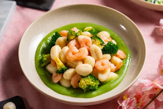 ポテトニョッキとサステナブルシュリンプ:ポテトニョッキのもちもち食感にブロッコリーとエビのうまみを合わせ、春らしい軽さと満足感が共存する仕上がり。