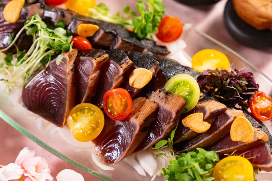 藁焼き鰹のカルパッチョ:藁の燻香と鰹の旨味、新玉ねぎの甘さを重ね、旬のトマトを使用し、春を感じる軽やかな前菜。