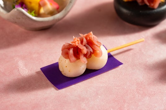 桜餡の花見団子は、香ばしく焼いた団子に甘じょっぱい桜餡を重ね、季節の名残を上品に味わえる一品に仕上げています。