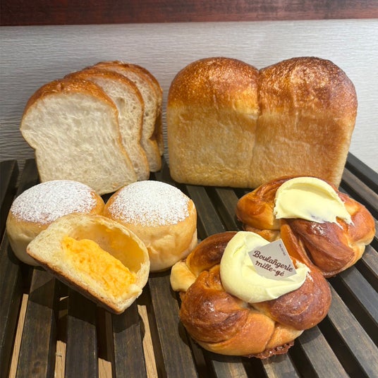 〈ブーランジュリー ミルジュ〉潤いハードトースト、赤玉【頑固】のクリームパン、ミルジュのシナモンロール