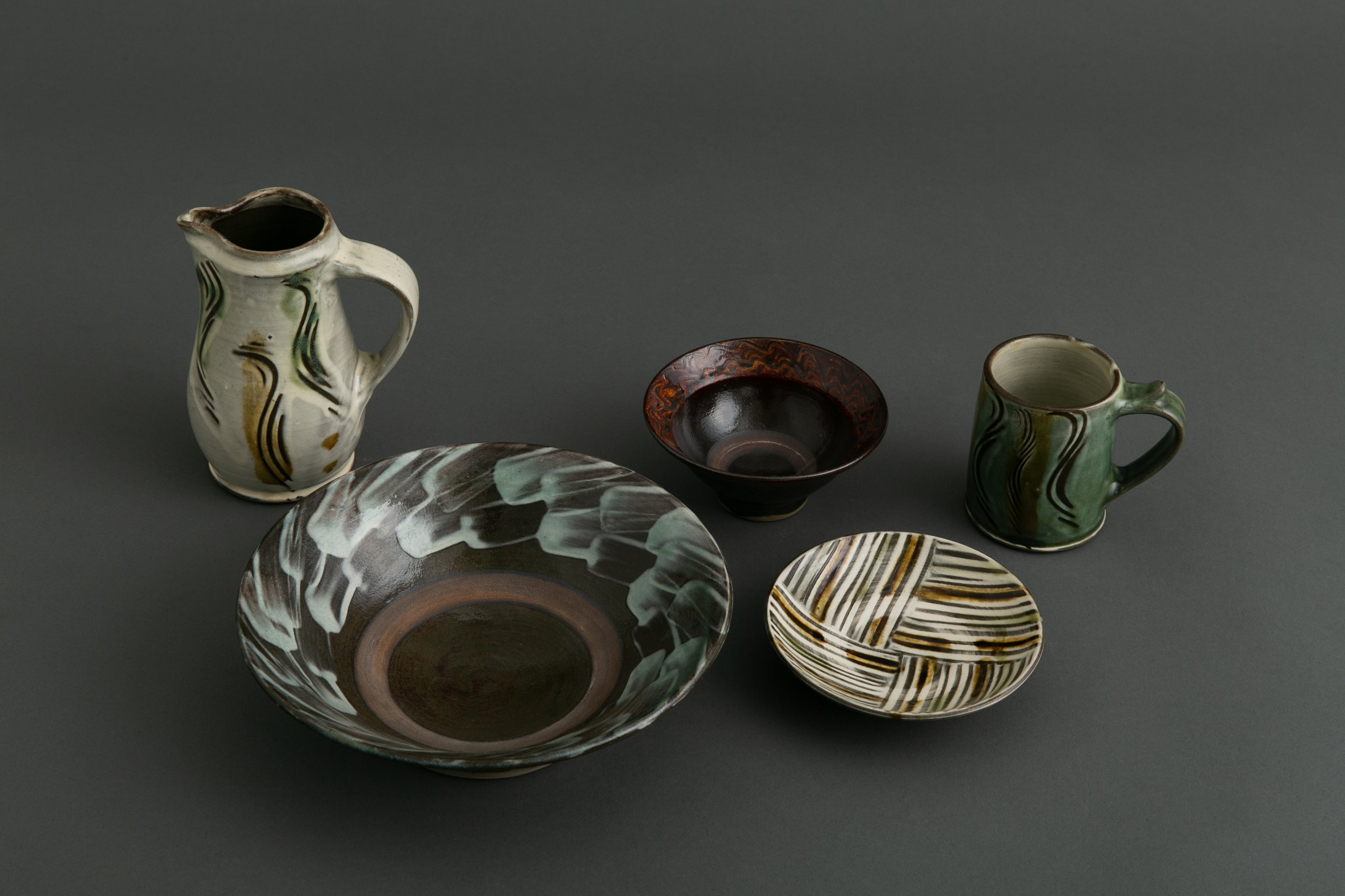 イギリスの古い伝統技法である「スリップウェア(泥状の化粧土で模様を描く技法)」を現代に蘇らせた第一人者の一人です。大らかな線やモダンな模様が特徴で、和洋問わず現代の食卓に馴染むデザインが人気です。
