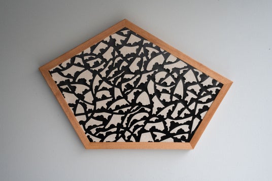 静岡に工房を構える同ブランドは、木材を継ぎ合わせる伝統技法“指物”を得意とし、今回のために制作されたハンドメイドのフレームで、《Between black & white》のテキスタイルを特別に額装し、お披露目します。