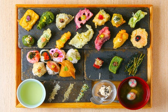 日本の伝統的な食、【天ぷら】とおちょぼ口の舞妓さんにも食べて頂けるようにと改良されて出来た【手まり寿司】を現代的に昇華したお料理を提供しております。