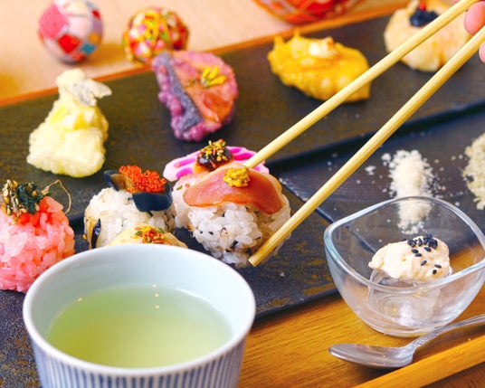京都の伝統料理「手まり寿司」は、舞妓さんでも食べやすいよう丸く、一口で楽しめるよう仕立てています。使用するお米は「八代目儀兵衛」さんの厳選米。手間暇かけた美しい彩りの寿司は、目でも舌でも楽しめる逸品です。四季折々の食材を使った京の味わいをぜひご堪能ください。