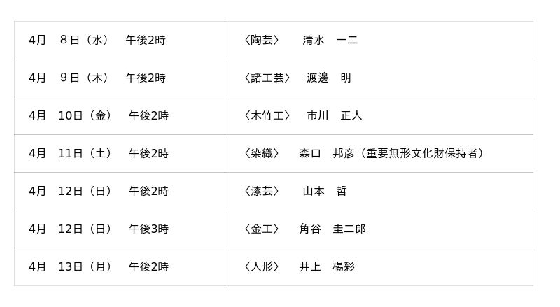 期間中は各部門の作家ならびに今回の受賞作家による列品解説もございます。