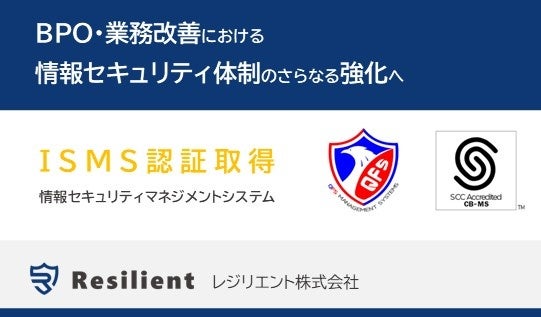 バックオフィス支援・BPO・業務改善サービスを展開するレジリエント株式会社(本社:京都府京都市、代表取締役:小林 史弥、以下「当社」)は、情報セキュリティマネジメントシステム(ISMS)の国際規格である「ISO/IEC 27001:2022」の認証を、2026年4月7日付で取得いたしました。