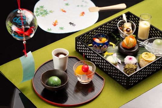 盛り付けには、金魚鉢や風に揺れる青葉を思わせる涼感のある和の器を用い、目にも涼やかな夏の情景を表現。京都らしい情緒と、ホテルならではのモダンな感性が融合した、上質な和のアフタヌーンティー体験をご提供いたします。