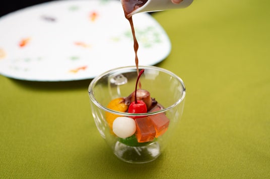 【お手盛り彩りあんみつ】 涼やかな寒天に、彩り豊かな果実や餡をお好みで盛り付けて楽しむ、夏らしい一品。自分だけの一皿を完成させる、和のアフタヌーンティーならではの体験型スイーツです。