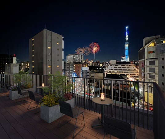 宿泊者限定の屋上テラスは、浅草の街並みを一望できる特別な空間です。日中はやわらかな陽ざしの中でゆったりとリラックスし、夜はライトアップされた浅草の街並みが広がる、“滞在そのものが目的になる”ひとときをお楽しみいただけます。