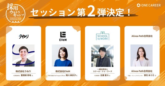 キャリアデータプラットフォーム事業を展開する株式会社ワンキャリア(本社:東京都渋谷区、代表取締役社長 執行役員CEO:宮下 尚之、以下「ワンキャリア」)は、2026年10月14日(水)に京都市勧業館 みやこめっせ(京都府京都市左京区)で開催される採用担当者向け大型カンファレンス『採用ウルトラキャンプ2026 in 京都』の第2弾セッション・登壇者を公開しました。